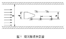 實驗證明:當兩列旋渦之間的距離h和同列兩個旋渦之間的距離L滿足L/h=0.281時非對稱旋渦列就能保持穩(wěn)定狀態(tài)。當流體雷諾數(shù)Re在5000-15000之間范圍內時,Sr基本不變,所以d和Sr為定值時旋渦發(fā)生體的頻率f與流體的平均流速成正比,即與體積流量Q成正比而與壓力、溫度、密度等無關。
